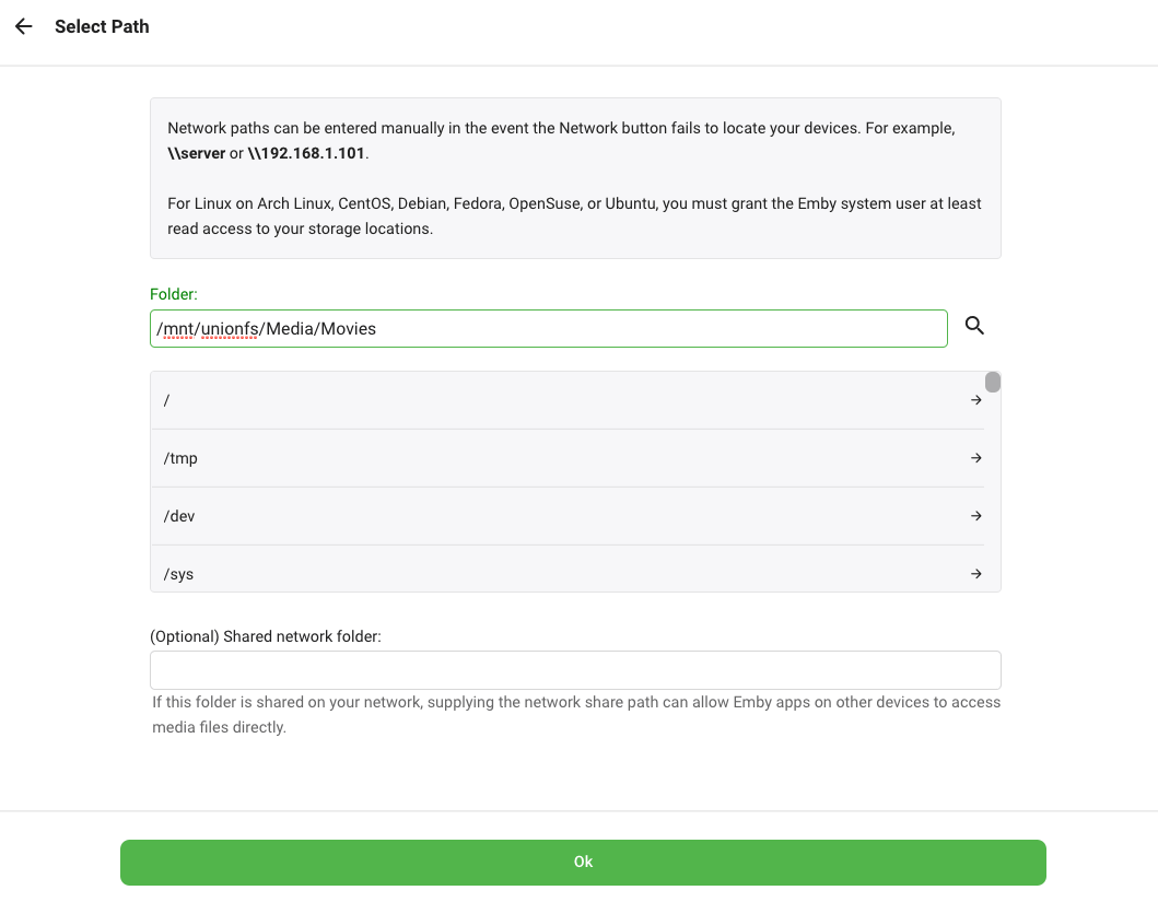 6. Type in or choose /mnt/unionfs/Media/Movies. Click OK.